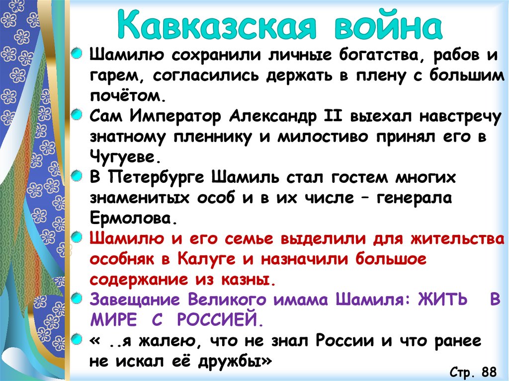 Шамилю сохранили личные богатства, рабов игарем, согласились держать в плену с большим