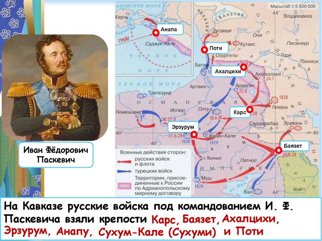 На Кавказе русские войска под командованием И. Ф.