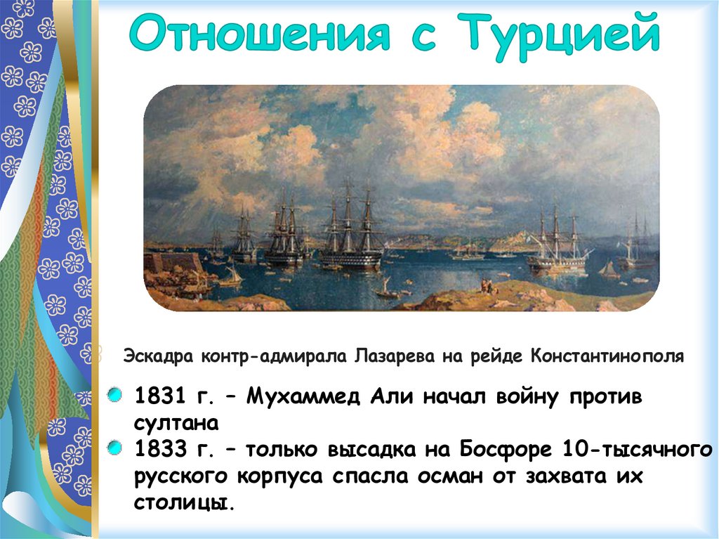 Эскадра контр-адмирала Лазарева на рейде Константинополя1831 г. – Мухаммед Али начал войну против
