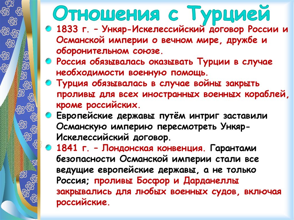 Османскую империю пересмотреть УнкярИскелессийский договор.