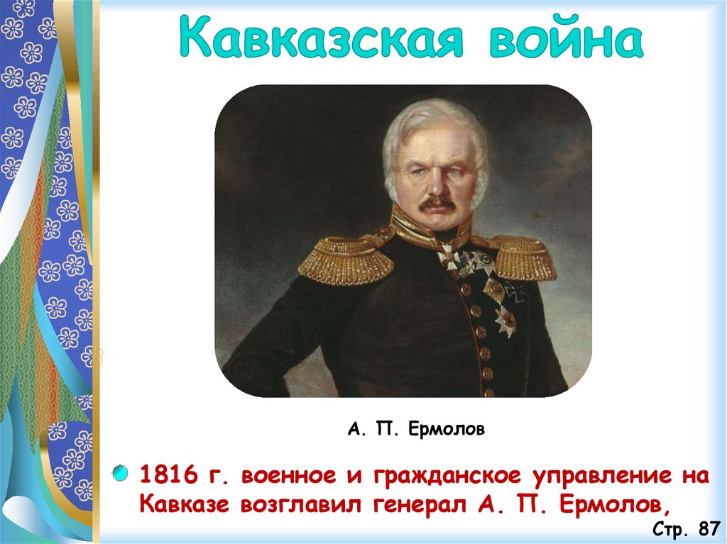 А. П. Ермолов1816 г. военное и гражданское управление на