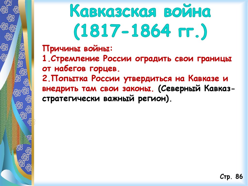 2.Попытка России утвердиться на Кавказе и