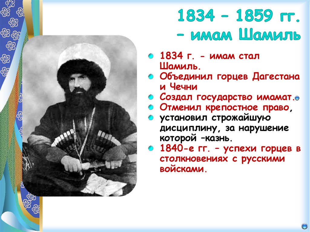 1834 г. - имам сталШамиль.