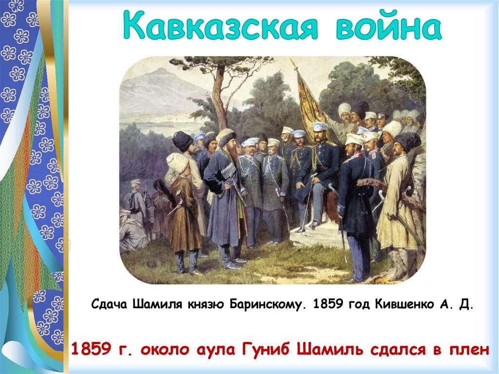 Сдача Шамиля князю Баринскому. 1859 год Кившенко А. Д.1859 г. около аула Гуниб Шамиль сдался в плен
