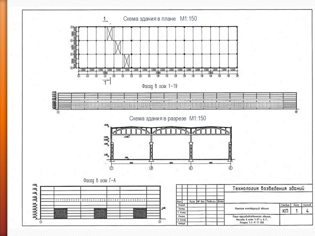 Схема здания в плане М1:150Схема здания в разрезе М1:150
