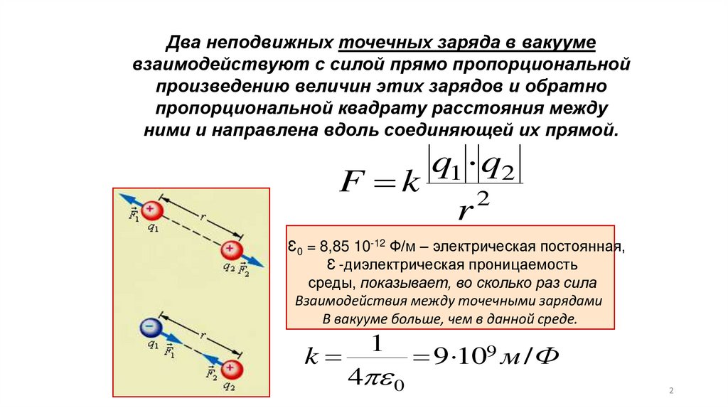 Два неподвижных точечных заряда в вакуумевзаимодействуют с силой прямо пропорциональной