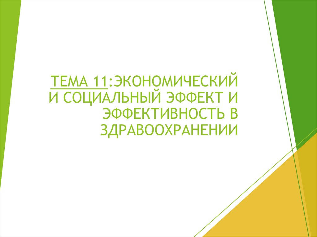 1. ТЕМА 11:ЭКОНОМИЧЕСКИЙ И СОЦИАЛЬНЫЙ ЭФФЕКТ И ЭФФЕКТИВНОСТЬ В ЗДРАВООХРАНЕНИИ