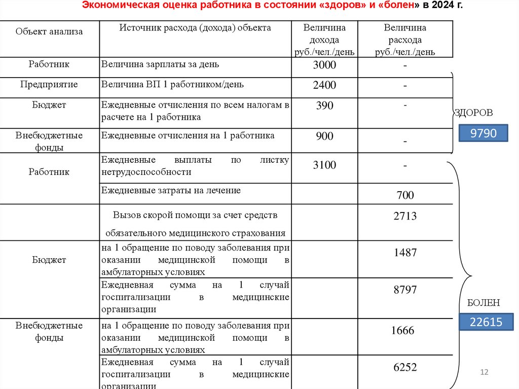 Экономическая оценка работника в состоянии «здоров» и «болен» в 2024 г.Объект анализа