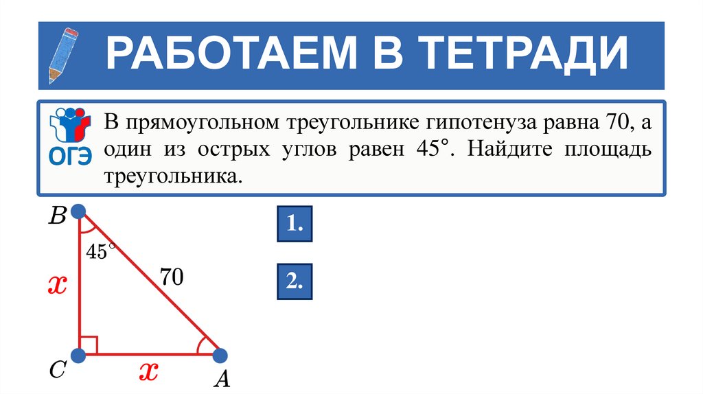РАБОТАЕМ В ТЕТРАДИВ прямоугольном треугольнике гипотенуза равна 70, а