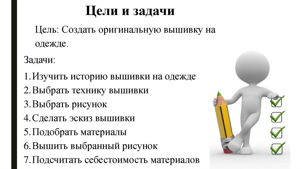 Цели и задачиЦель: Создать оригинальную вышивку на