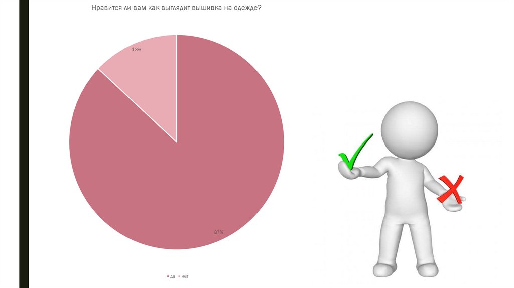 Нравится ли вам как выглядит вышивка на одежде?13%