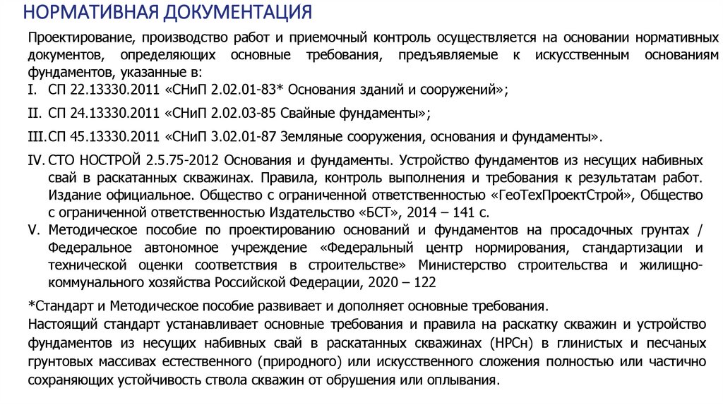 IV. СТО НОСТРОЙ 2.5.75-2012 Основания и фундаменты. Устройство фундаментов из несущих набивных