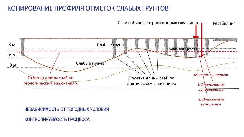 КОПИРОВАНИЕ ПРОФИЛЯ ОТМЕТОК СЛАБЫХ ГРУНТОВСваи набивные в раскатанных скважинах