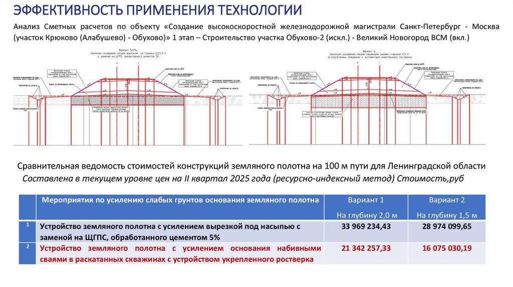 ЭФФЕКТИВНОСТЬ ПРИМЕНЕНИЯ ТЕХНОЛОГИИАнализ Сметных расчетов по объекту «Создание высокоскоростной железнодорожной магистрали Санкт-Петербург - Москва