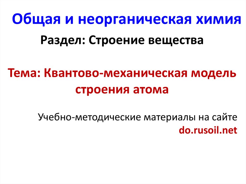 Общая и неорганическая химияРаздел: Строение вещества