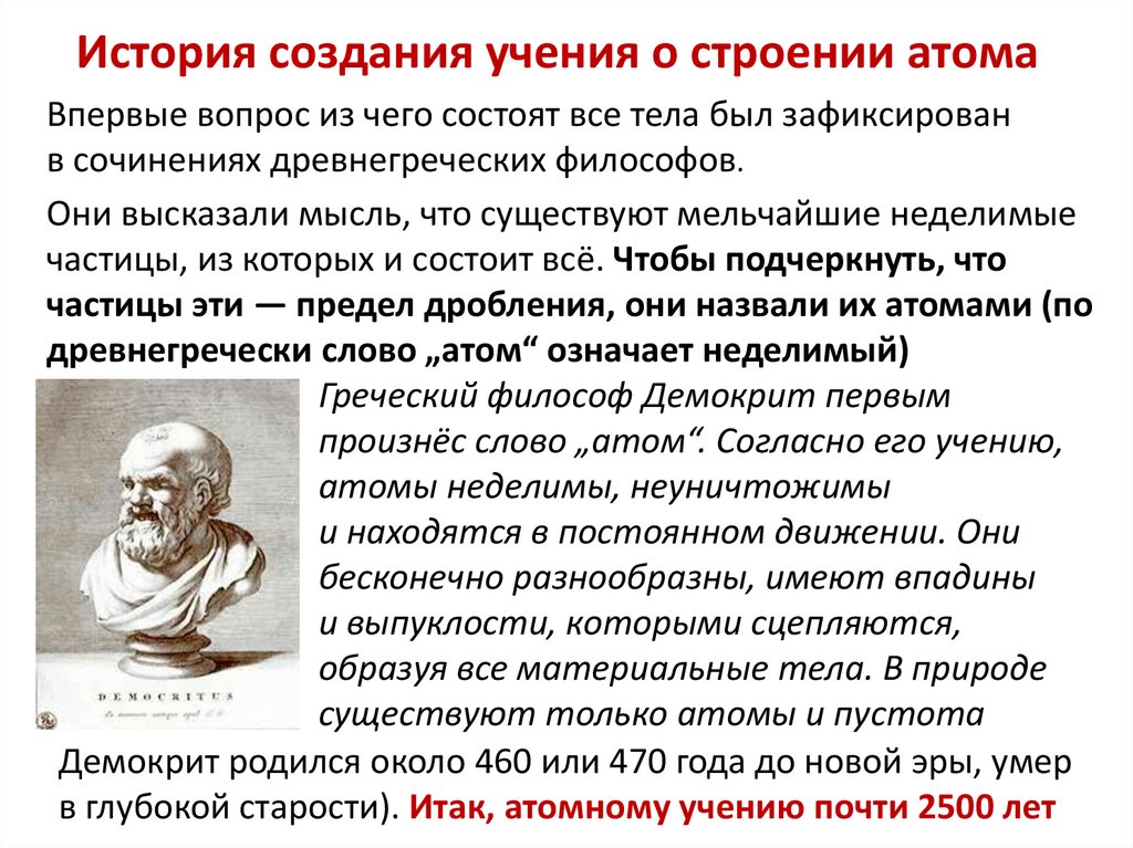 в глубокой старости). Итак, атомному учению почти 2500 лет