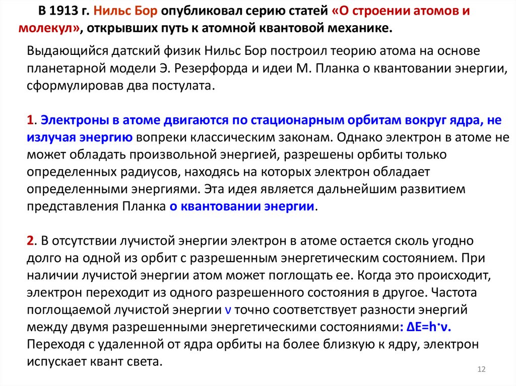 среди прочего, объясняет механику движения электрона вокруг ядра