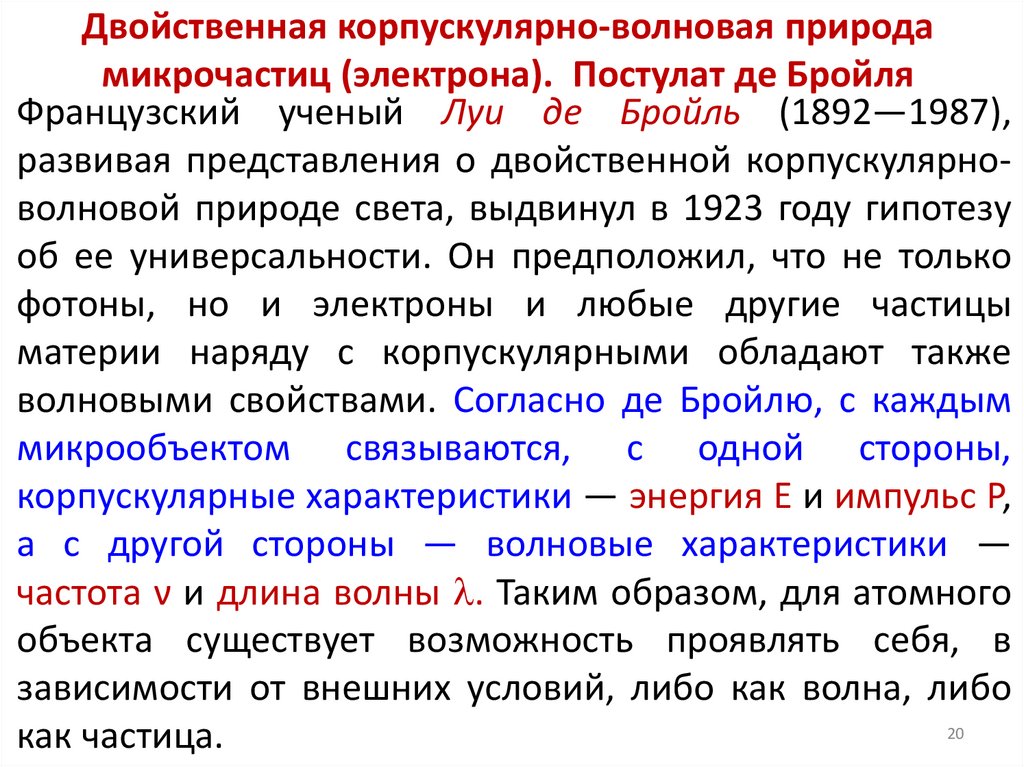 1924 Луи де Бройль вводит волновую модель атомной структуры,
