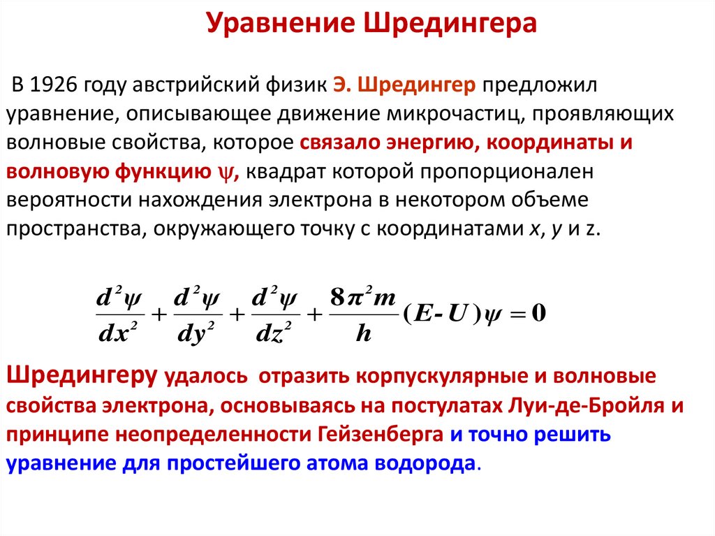 1927 Эрвин Шредингер предлагает уравнение Шредингера, которое