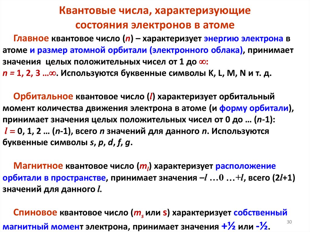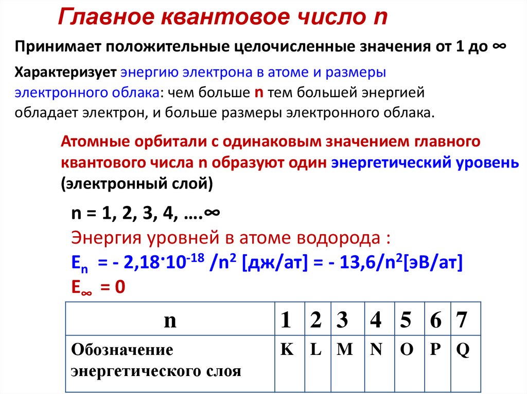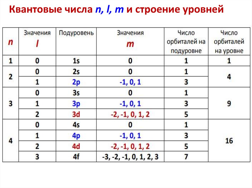 Квантовые числа n, l, m и строение уровней51.