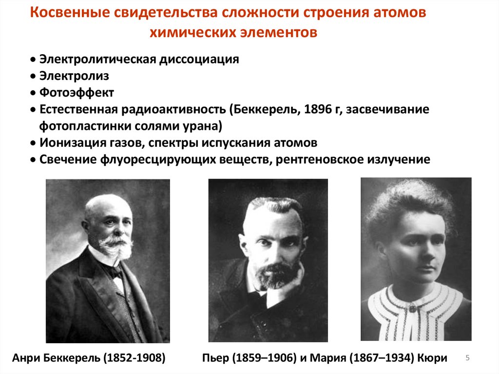 Косвенные свидетельства сложности строения атомовхимических элементов
