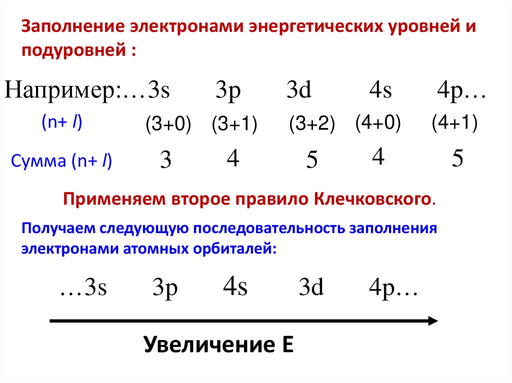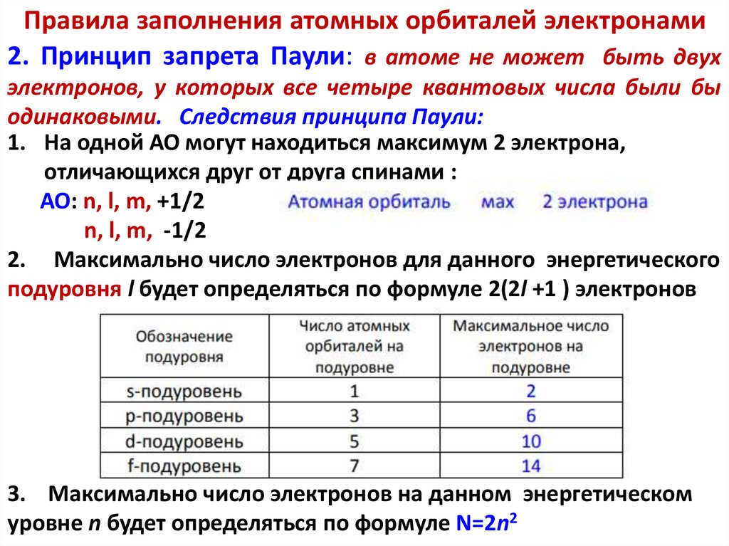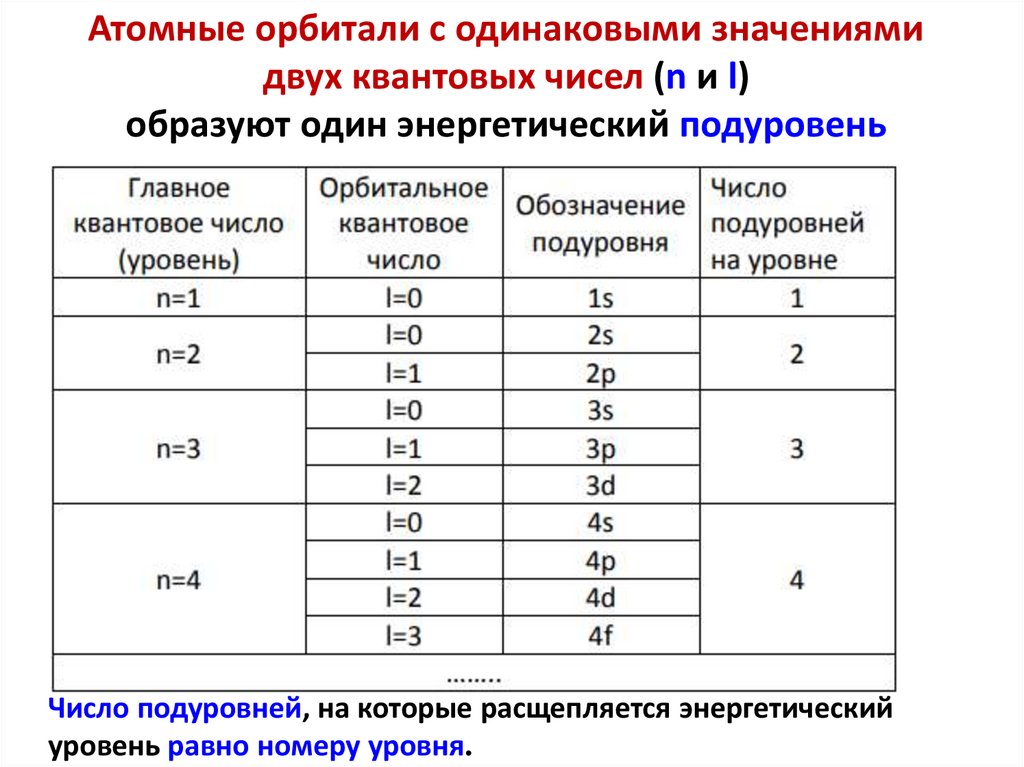 а общее число орбиталей на энергетическом уровне равно n2