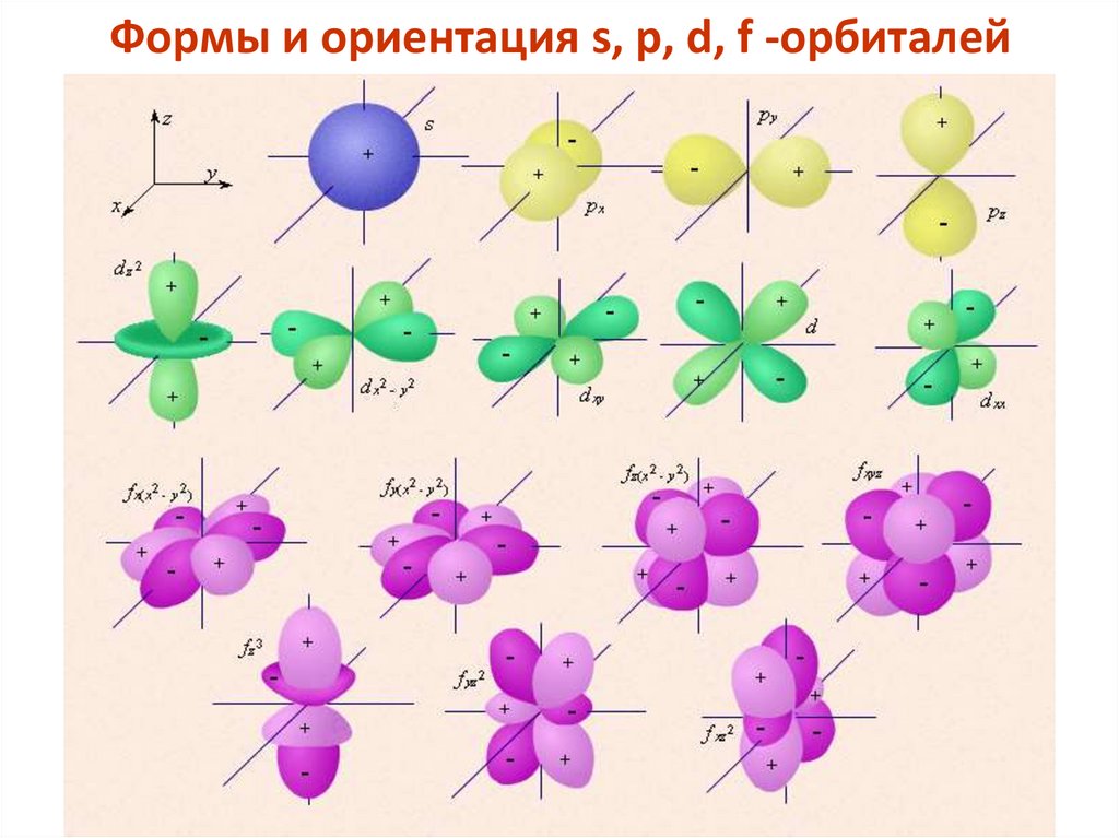 Формы и ориентация s, p, d, f -орбиталей48.