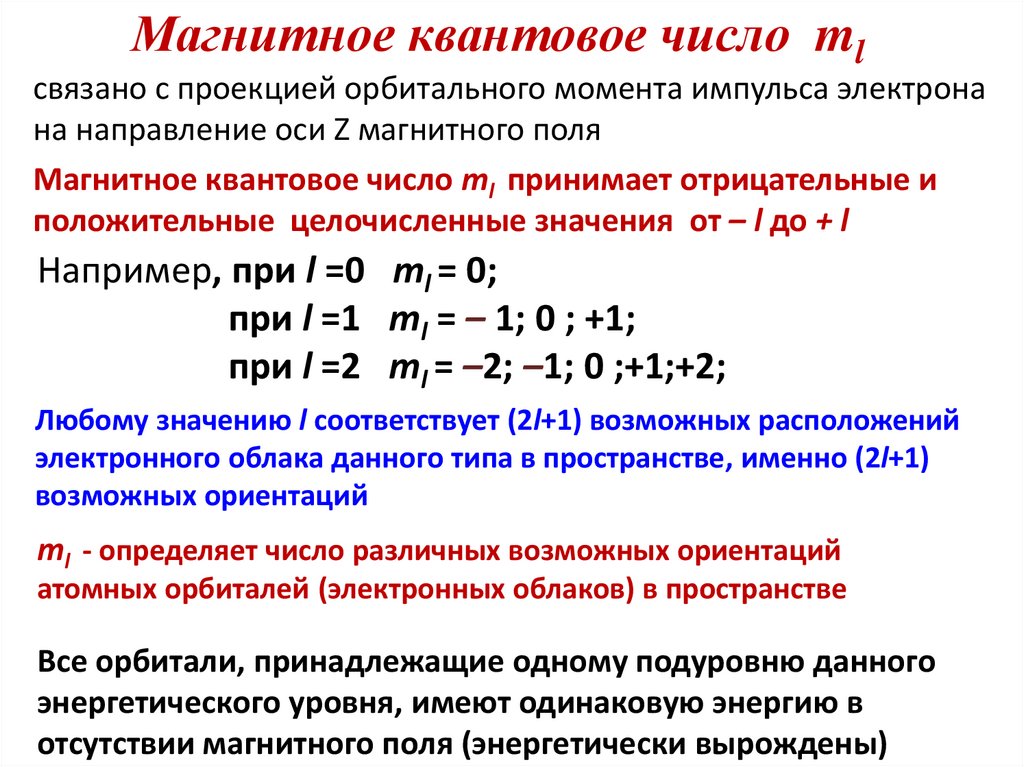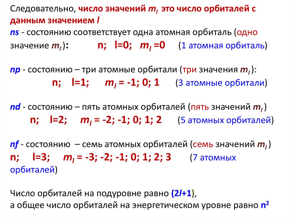 Следовательно, число значений ml это число орбиталей сданным значением l