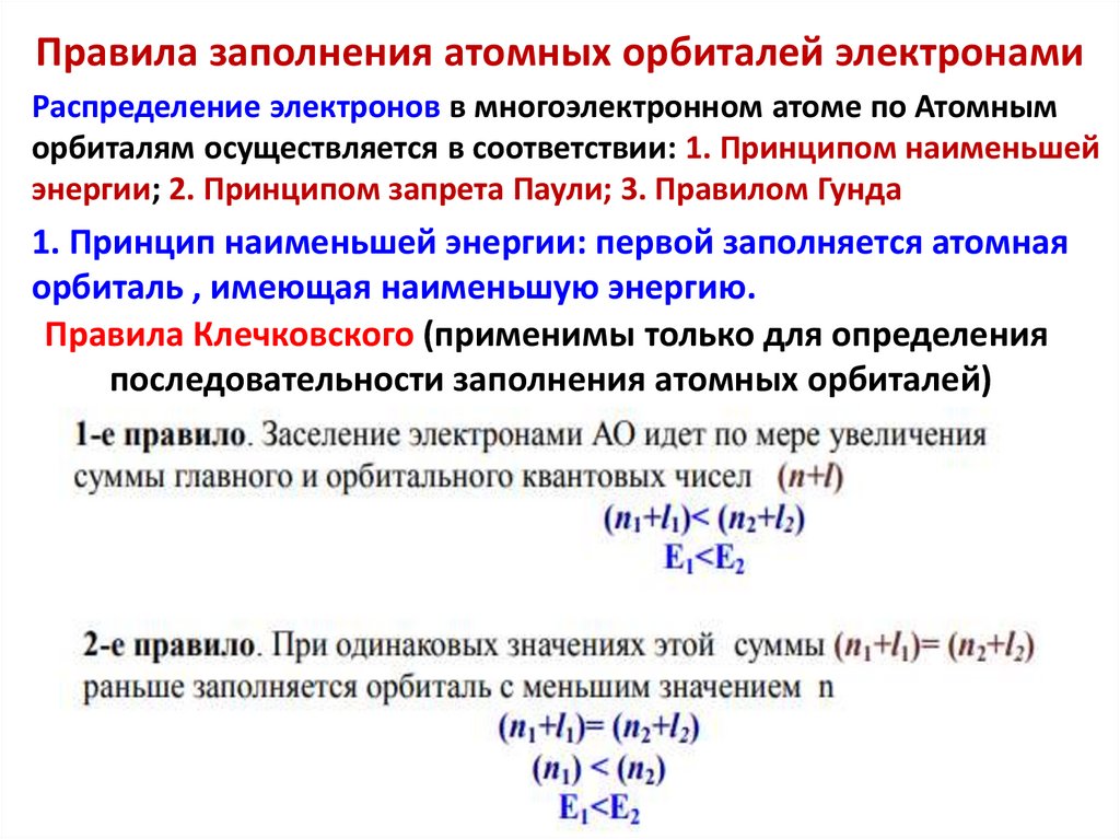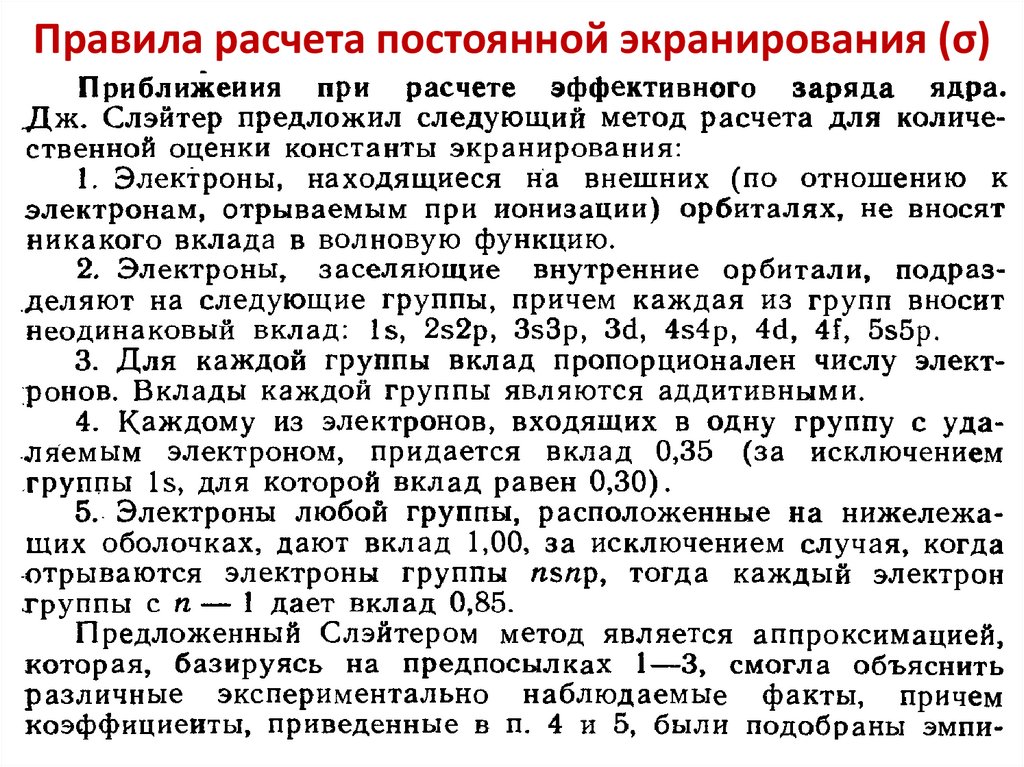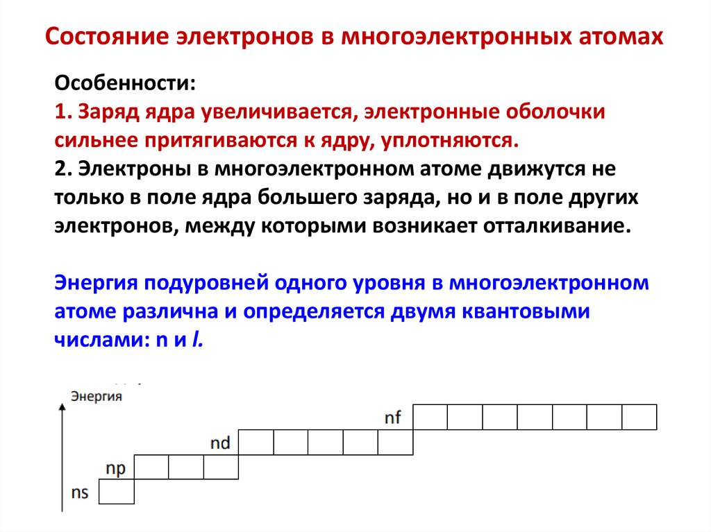 Состояние электронов в многоэлектронных атомахОсобенности: