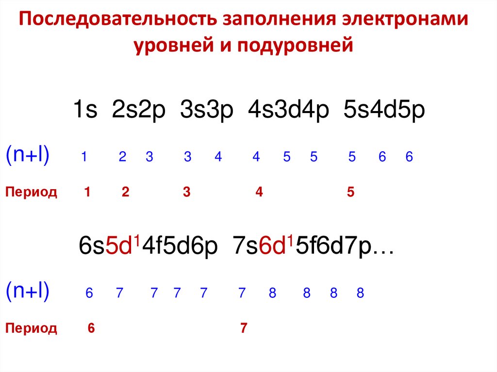 Число орбиталей на подуровне равно (2l+1),