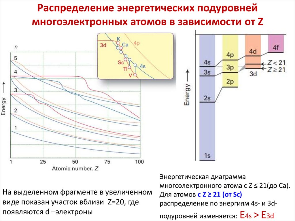 Энергия электронов в многоэлектронных атомахДля многоэлектронных атомов энергия на