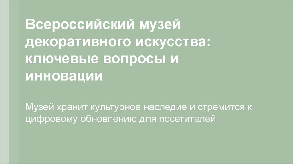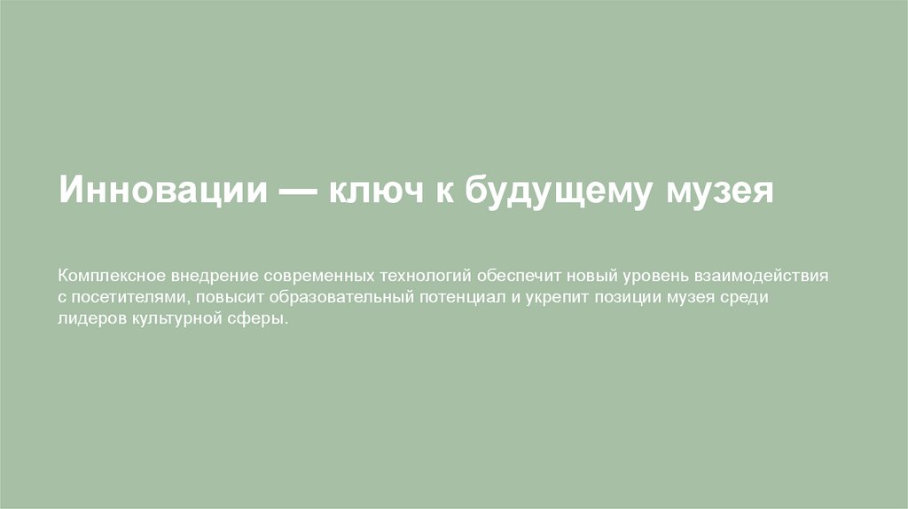 Инновации — ключ к будущему музеяКомплексное внедрение современных технологий обеспечит новый уровень взаимодействия