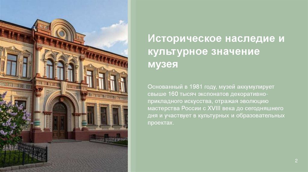 свыше 160 тысяч экспонатов декоративноприкладного искусства, отражая эволюцию