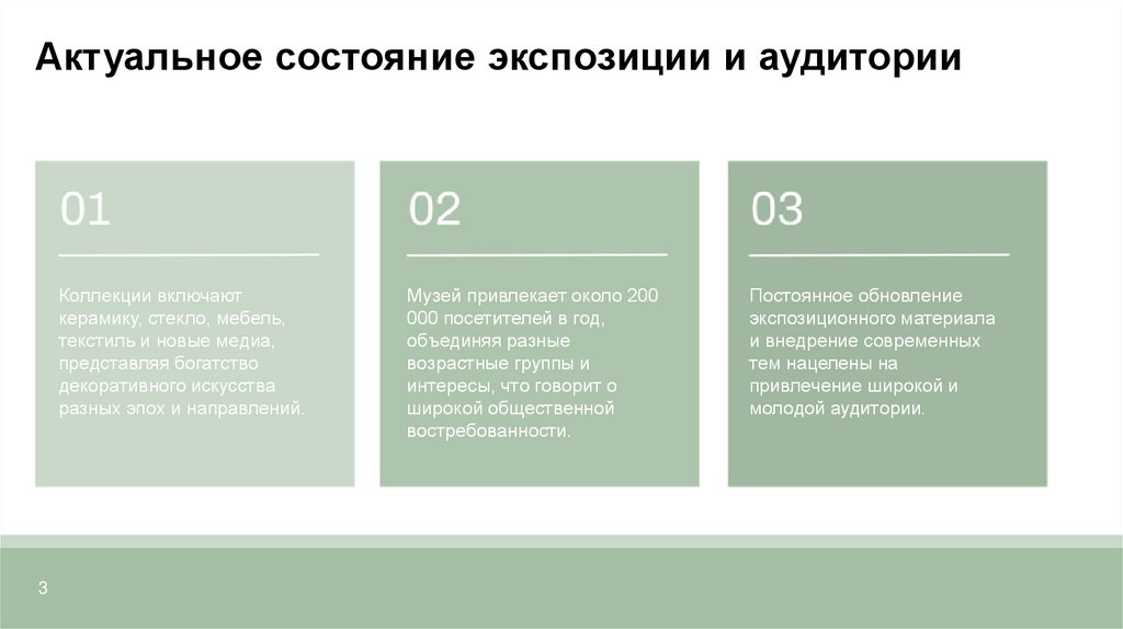 Актуальное состояние экспозиции и аудиторииКоллекции включают