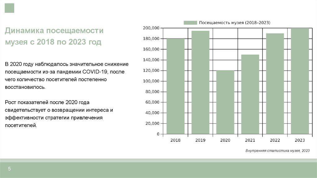 Динамика посещаемостимузея с 2018 по 2023 год