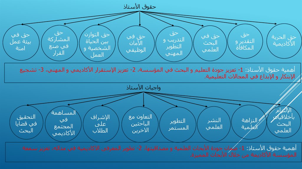 أهمية حقوق األستاذ -1 :ضمان جودة األبحاث العلمية و مصداقيتها -2 ،تطوير المعرفى االكاديمية في مداله ،تعزيز سمعة