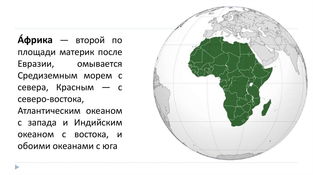 А́фрика — второй поплощади материк после
