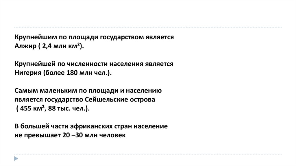 1. Африка. Крупнейшие по территории и численности населения страны