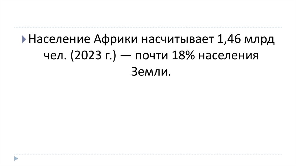 Население Африки насчитывает 1,46 млрдчел. (2023 г.) — почти 18% населения