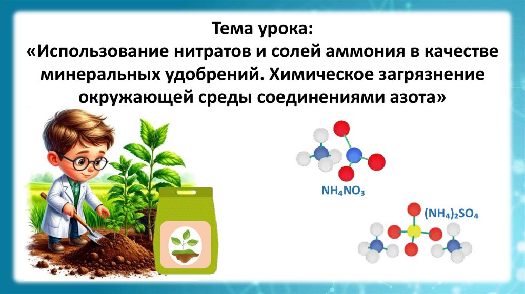 Тема урока:«Использование нитратов и солей аммония в качестве