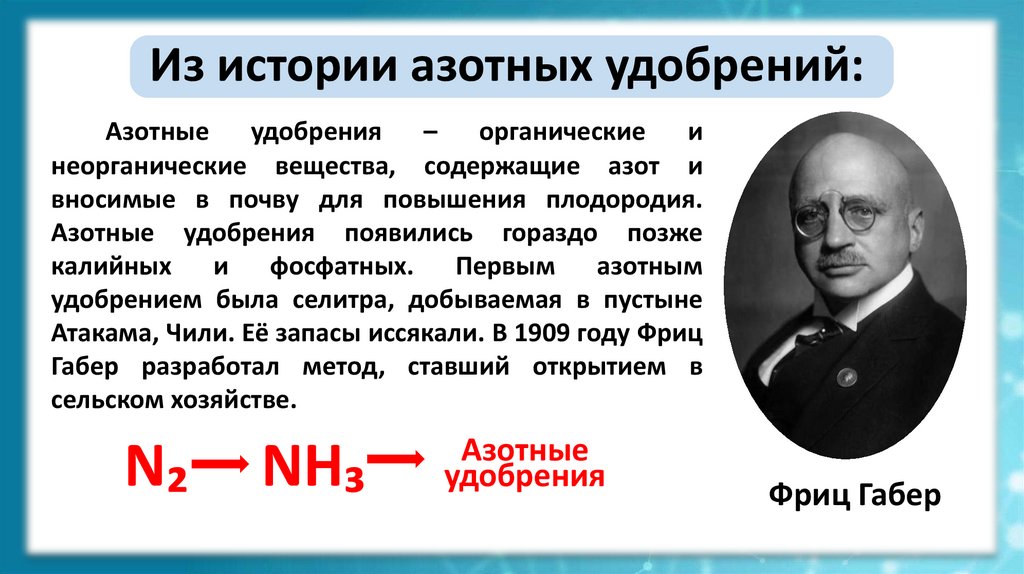 Из истории азотных удобрений:Азотные удобрения – органические и