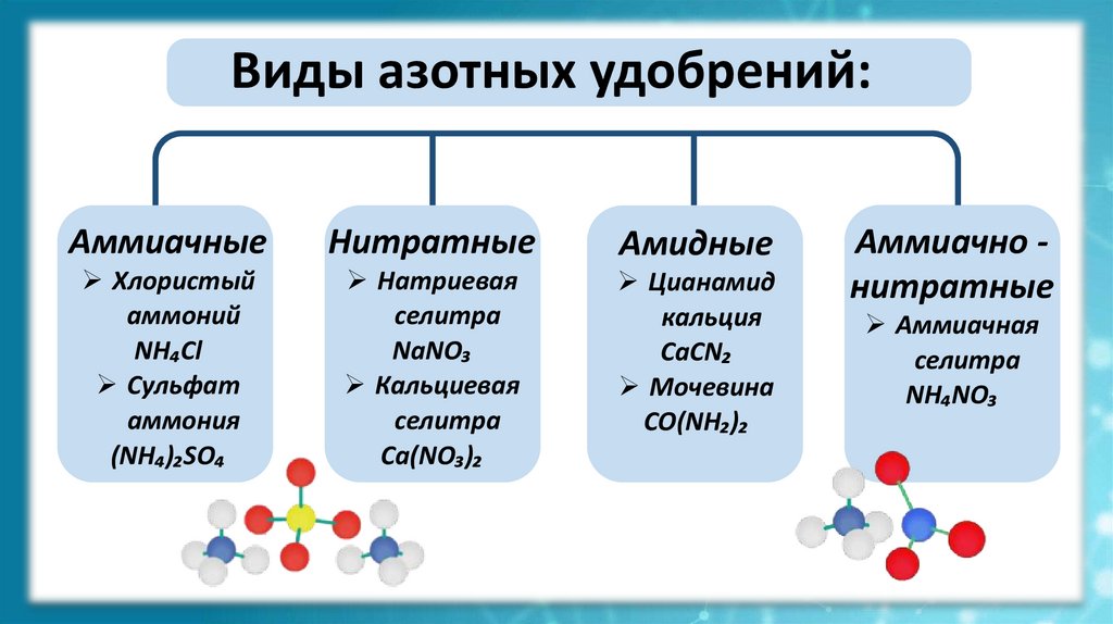 Виды азотных удобрений:Аммиачные