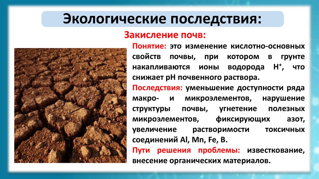 Экологические последствия:Закисление почв: