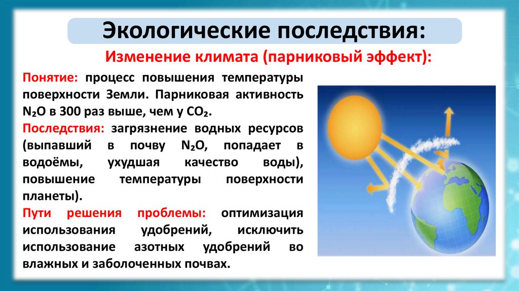 Экологические последствия:Изменение климата (парниковый эффект):