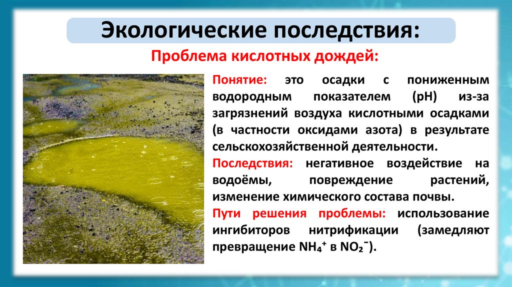 Экологические последствия:Проблема кислотных дождей: