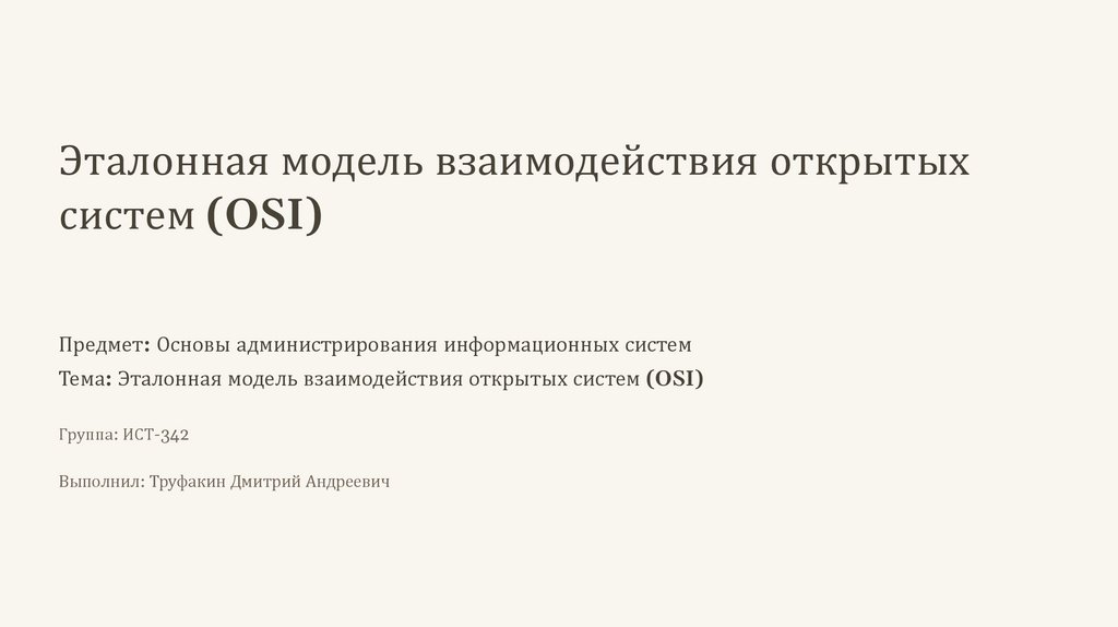 Тема: Эталонная модель взаимодействия открытых систем (OSI)