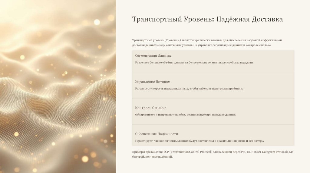 Транспортный Уровень: Надёжная ДоставкаТранспортный уровень (Уровень 4) является критически важным для обеспечения надёжной и эффективной