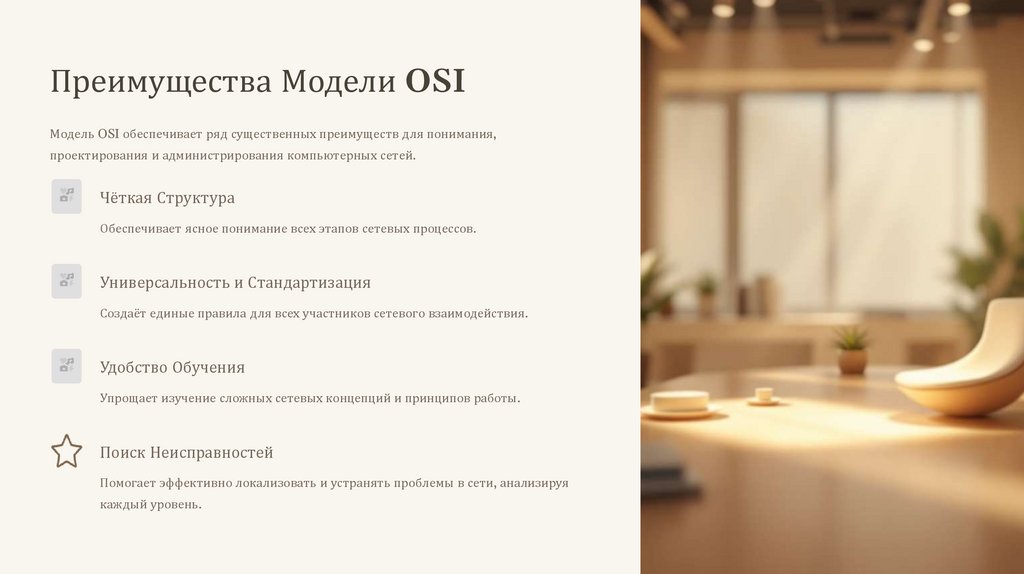 Преимущества Модели OSIМодель OSI обеспечивает ряд существенных преимуществ для понимания,