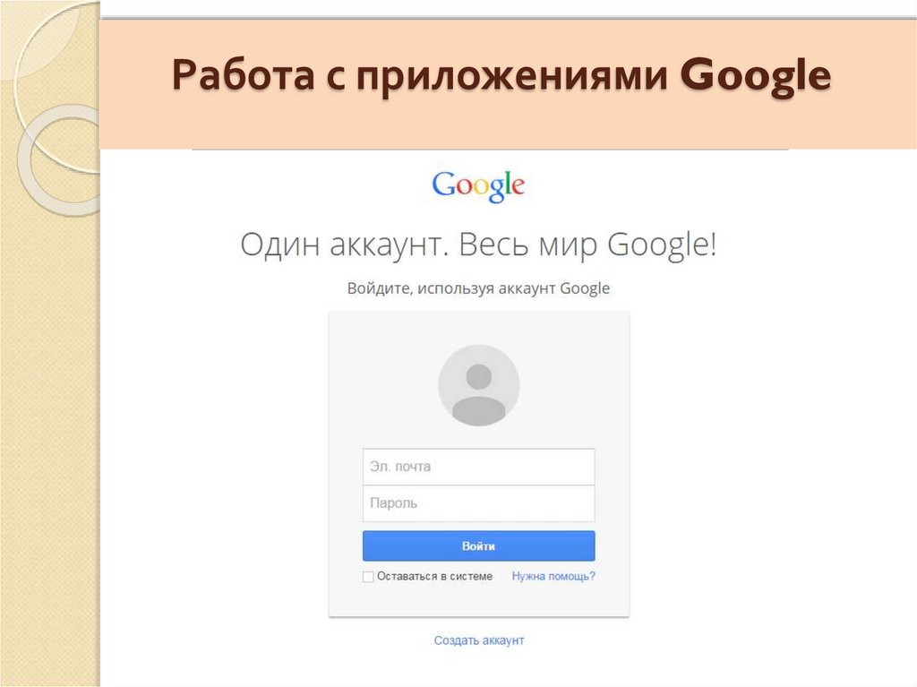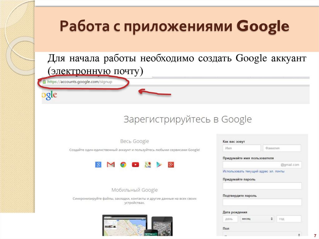 Работа с приложениями GoogleДля начала работы необходимо создать Google аккуант