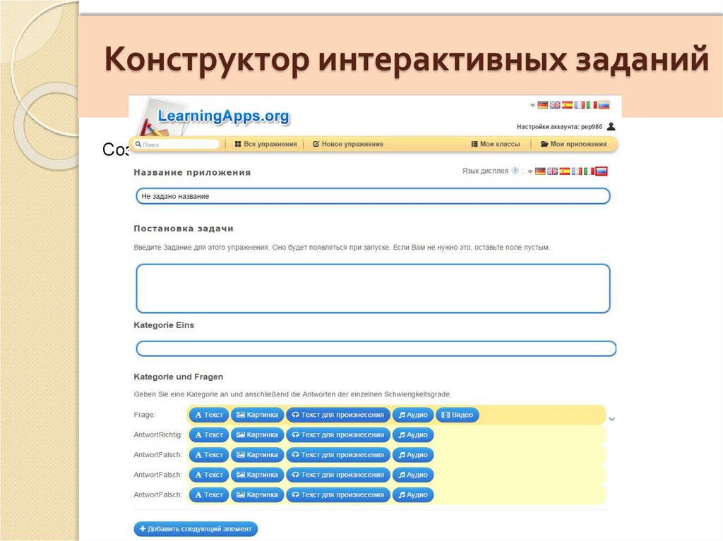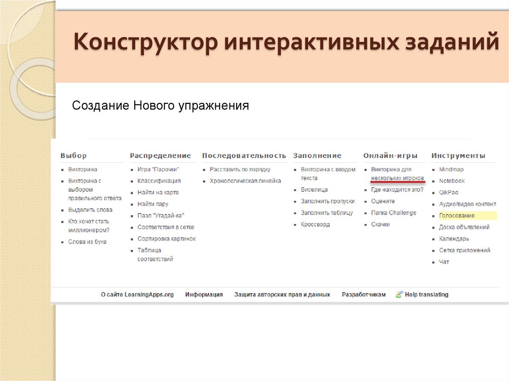Конструктор интерактивных заданийСоздание Нового упражнения